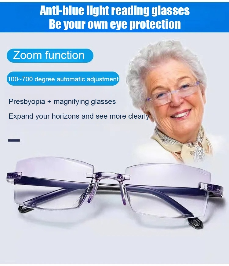 Anti blue light zoom reading glasses